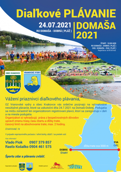 V sobotu, 24. júla sa v rekreačnej oblasti Domaša Dobrá uskutoční športové podujatie diaľkové plávanie. Všetci záujemcovia by sa mali včas prihlásiť, pozrite si propozície.