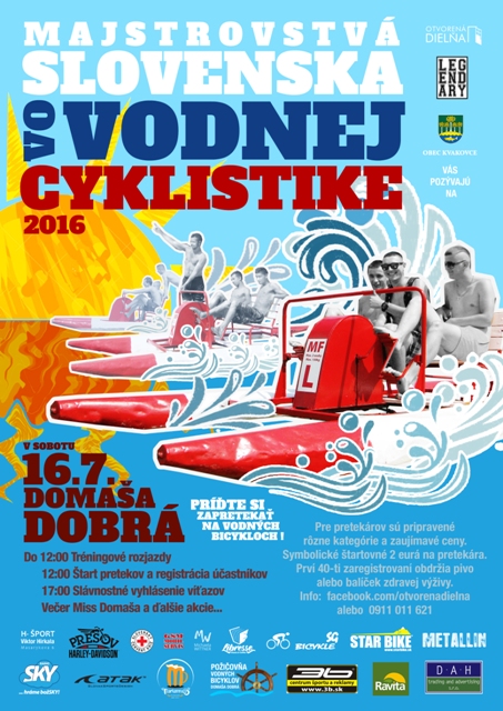 Exhibícia, aká tu ešte nebola bola presunutá kvôli nepriazni počasia na túto sobotu, 23. júla v R.O. Dobrá. Otvorená dielňa v Prešove, obec Kvakovce a Požičovňa Dobrá vás pozývajú do rekreačnej oblasti Domaša Dobrá na majstrovstvá Slovenskej republiky vo vodnej cyklistike. Šport a zábava pre každého, súťažiť sa bude vo viacerých kategóriách.