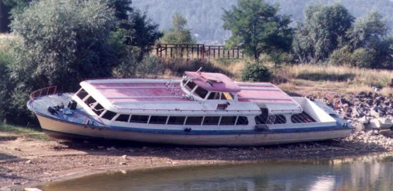 Na obrázku: loď Hydrobus tesne pred zošrotovaním v R.O. Domaša Eva