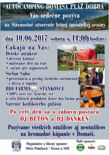 Autokemping Domaša pláž Dobrá v spolupráci s obcou Kvakovce Vás srdečne pozýva na Slávnostné otvorenie letnej turistickej sezóny.