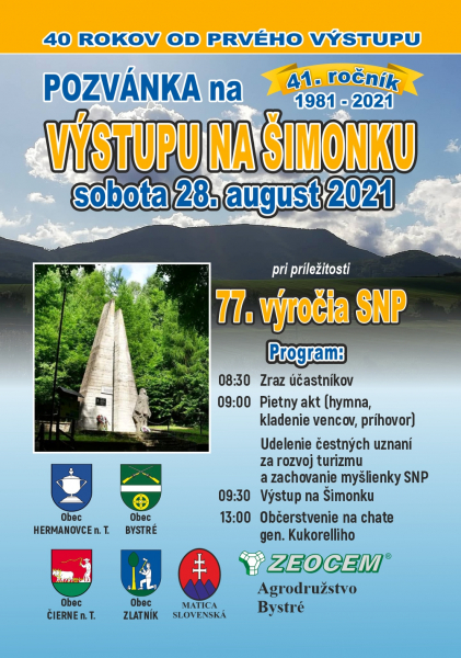Pozvánka na 41. ročník výstupu na Šimonku, sobota 28. august 2021 pri príležitosti 77. výročia SNP