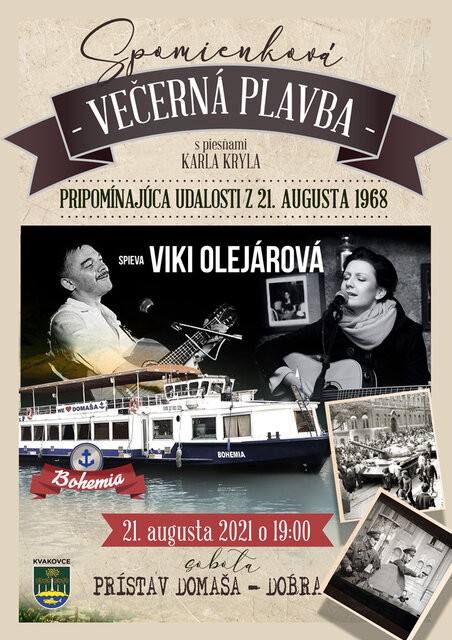 Spomienková večerná plavba na 21. august 1968 s piesňami Karla Kryla, sobota 19:30 h
