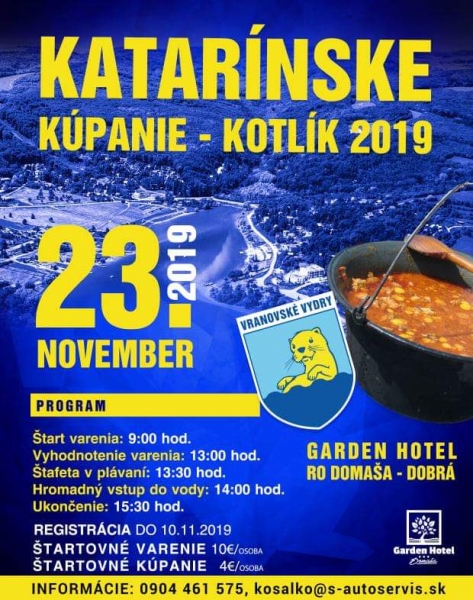 V sobotu, 23. novembra sa v rekreačnej oblasti Domaša Dobrá uskutoční Katarínske kúpanie a kotlík. Družstvá si zmerajú sily vo varení guľášu, súčasťou bude aj hromadné kúpanie vo vodách Domaše. Do súťaže vo varení guľášu je prihlásených už viac ako 23 družstiev, prihlásiť sa ešte dá do utorka, 19.11.2019.
