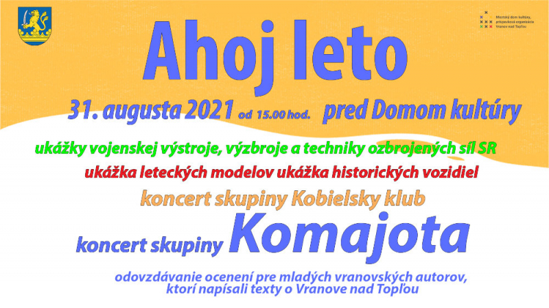 31. augusta od 15:00 hod pred domom kultúry Vranov nad Toľpou