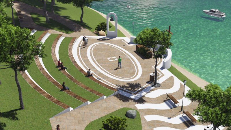Všetky prevádzky sa presunú smerom k vode. Postaví sa jednotný prevádzkový objekt, kaplnka a upraví sa nábrežie ako celok výhľadovo s prepojením na plánovaný chodník okolo vody.