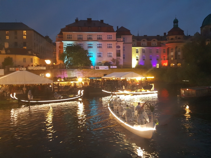 Nasledovala regata lodí – gondol z Benátok a Rakúska, ktorú odštartoval kardinál Dominik Duka vlajkou z Karlovho mostu.