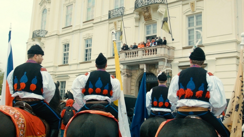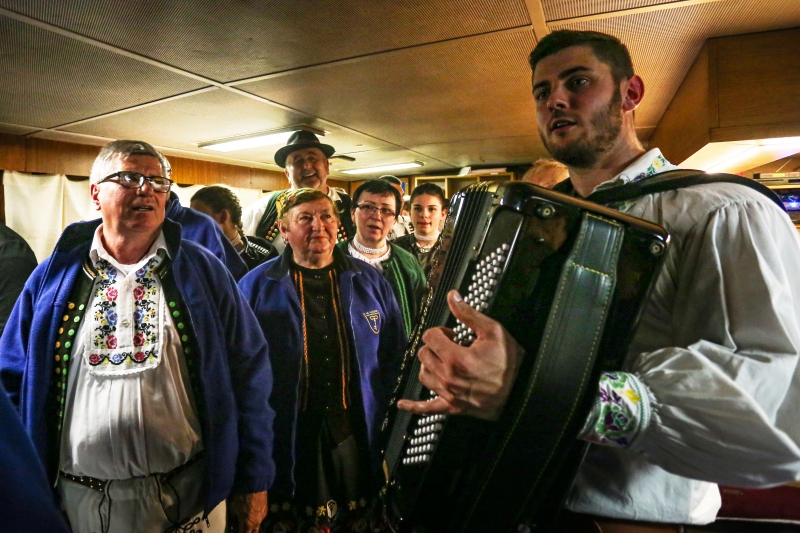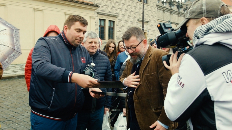 Slávnosti Navalis sa začali na Hradčanoch pred Arcibiskupským palácom, kde sa do programu zapojil aj folklórny súbor Rovina z Dlhého Klčova a rozohrial tak v chladnom počasí publikum z domova aj zo zahraničia. Pánovi Bergmanovi sme ako nášmu sprievodcovi z vďaky za milé prijatie odovzdali upomienkove predmety, ale aj domácu slivovicu od našich gazdov.