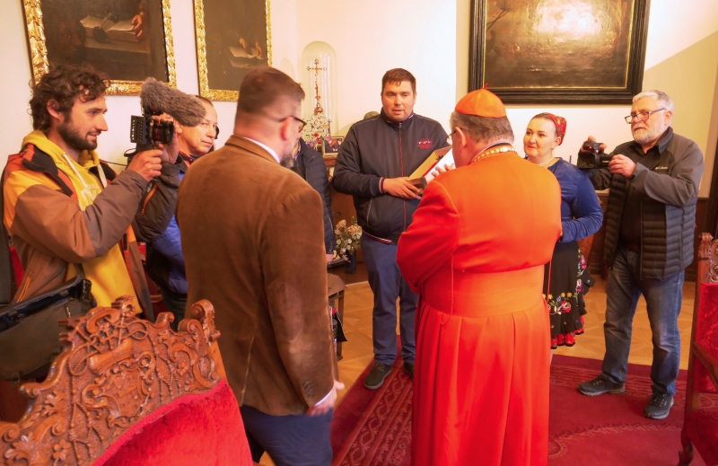 starostka Dlhého Klčova Ľubica Zubková odovzdáva kardinálovi pozdravy od ich pátra Jána, ktorý bol spolužiakom otca arcibiskupa.