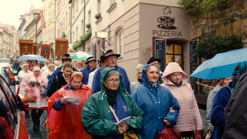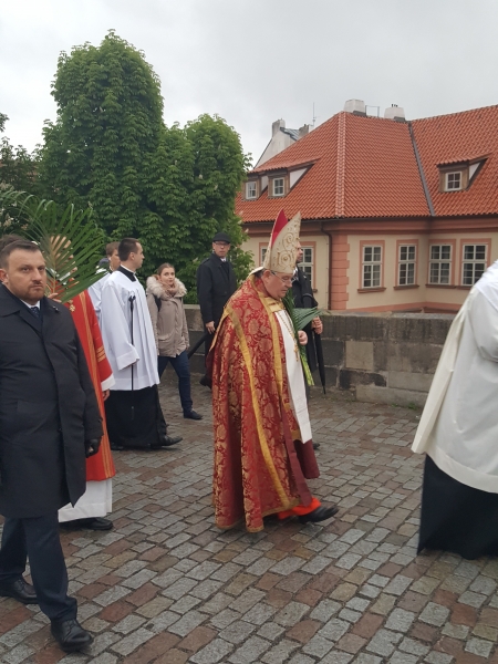 Po skončení omše sa ľudia priamo v katedrále zoradili do sprievodu a spoločne sa všetci vydali na procesiu na Karlov most, presne na miesto, odkiaľ bol v roku 1393 zhodený do rieky Vltava Svätý Ján Nepomucký.