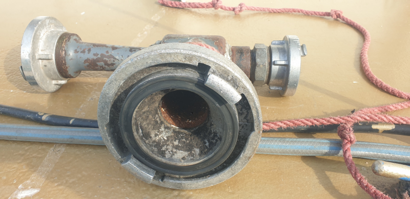 Funguje to tak, že sa na výpustný otvor nasadí špeciálny ventil, do ktorého sa napojí požiarna hadica, ktorá má vývod na hornej palube. Do tej hadice sa pustí požiarna voda, čím sa vytvorí podtlak a takýmto pomerne komplikovaným spôsobom sa dokážu vytlačiť odpadové vody z nádrže až do žumpy na breh.