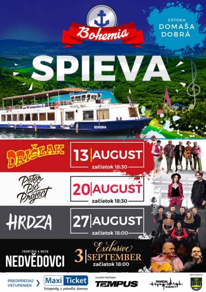 Séria letných koncertov pod názvom Bohemia spieva vyvrcholí koncertami známych umelcov. Vo štvrtok, 27. augusta o 18:00 hodine sa uskutoční koncert skupiny Hrdza a vo štvrtok, 3. septembra o 18:00 hodine vystúpia bratia František a Vojta Nedvědovci. Vstupenky v predpredaji v sieti maxiticket.sk