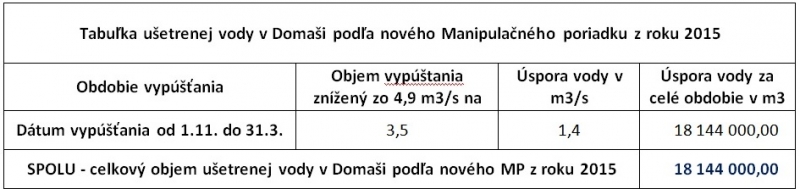 Každá vodná nádrž a teda aj Domaša má svoj manipulačný poriadok. Je to dokument, podľa ktorého sa riadi vypúšťanie vody z každej vodnej priehrady. Je to živý materiál, ktorý sa prispôsobuje hydrologickej situácii v regióne. Aspoň by sa mal prispôsobovať.