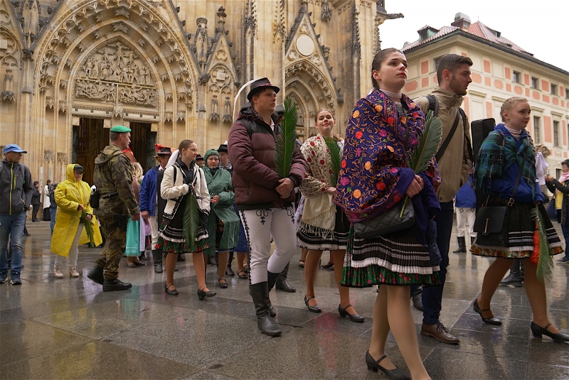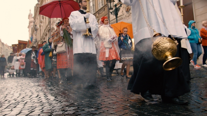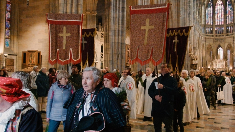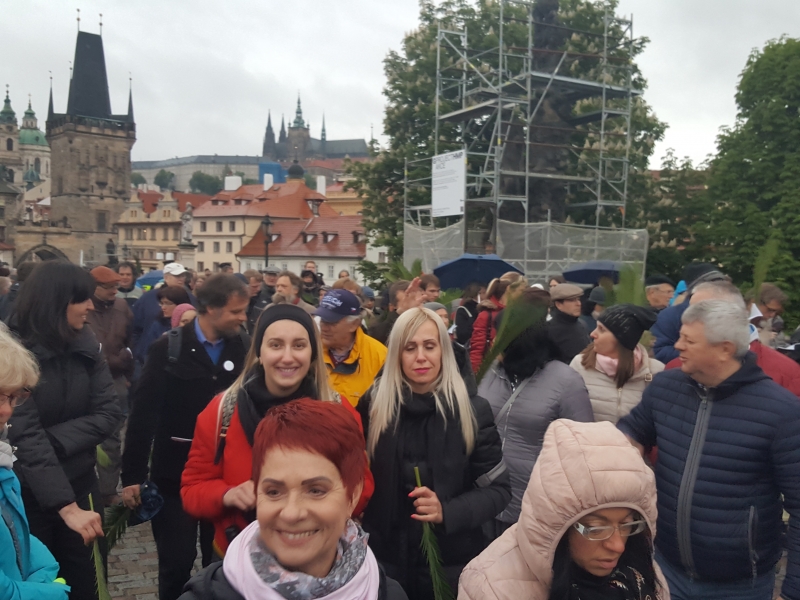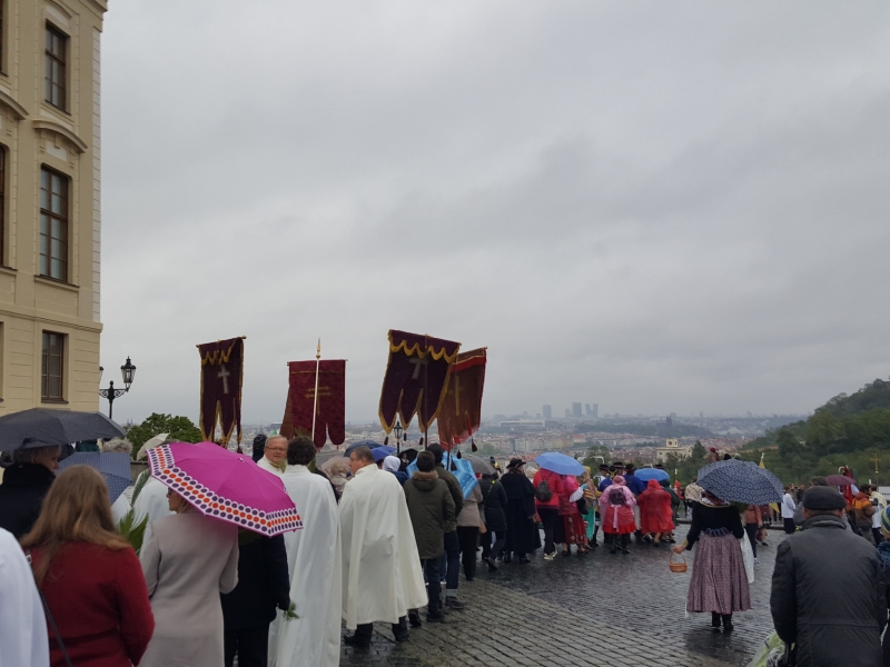 Po skončení omše sa ľudia priamo v katedrále zoradili do sprievodu a spoločne sa všetci vydali na procesiu na Karlov most, presne na miesto, odkiaľ bol v roku 1393 zhodený do rieky Vltava Svätý Ján Nepomucký.