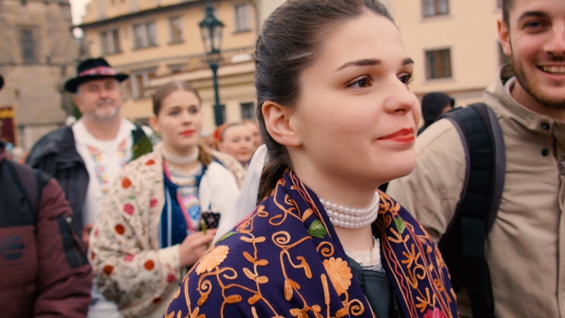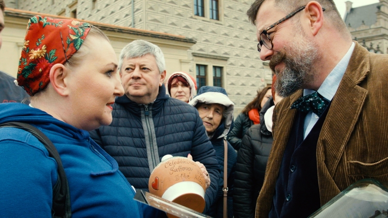 Slávnosti Navalis sa začali na Hradčanoch pred Arcibiskupským palácom, kde sa do programu zapojil aj folklórny súbor Rovina z Dlhého Klčova a rozohrial tak v chladnom počasí publikum z domova aj zo zahraničia. Pánovi Bergmanovi sme ako nášmu sprievodcovi z vďaky za milé prijatie odovzdali upomienkove predmety, ale aj domácu slivovicu od našich gazdov.